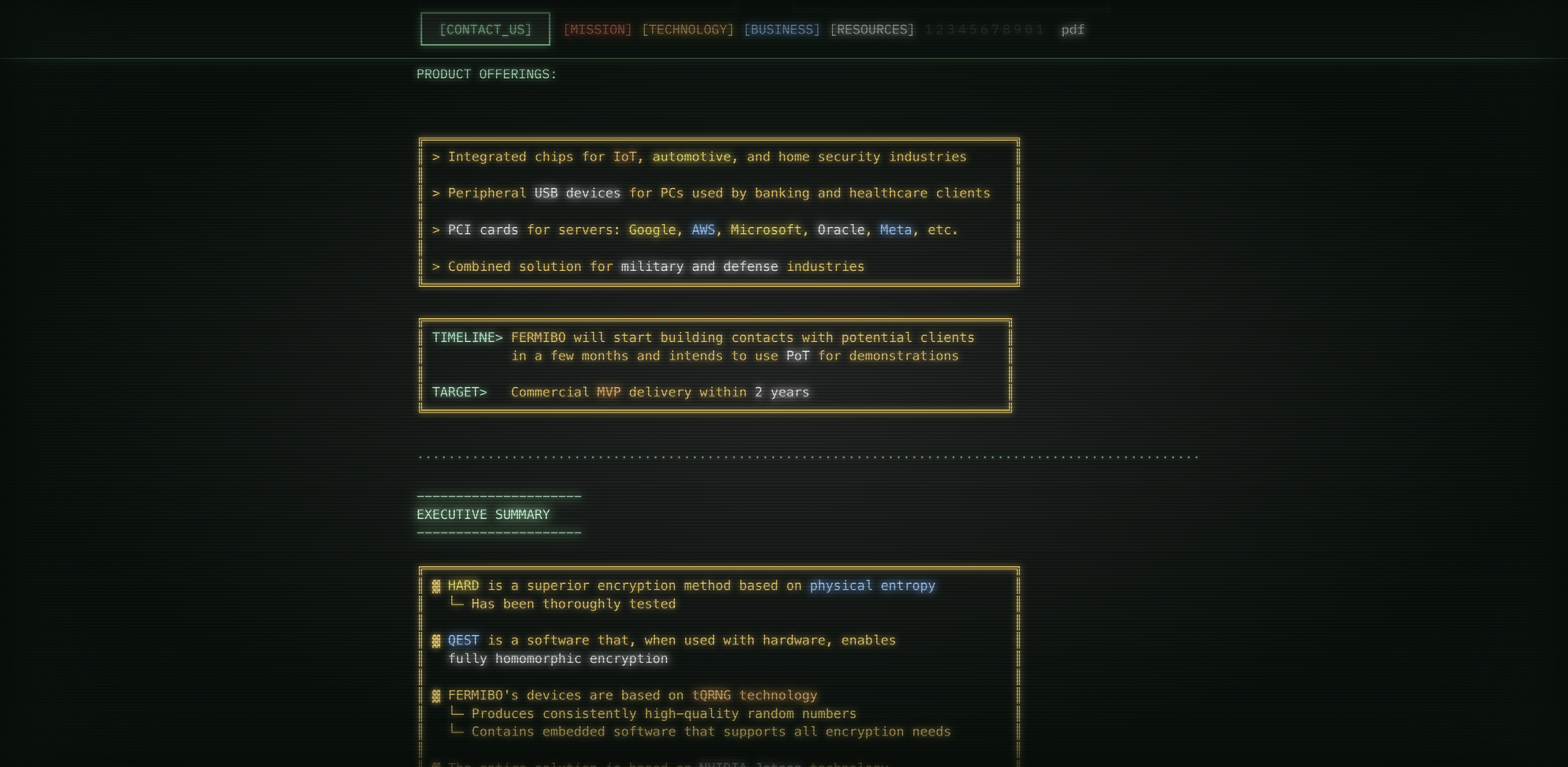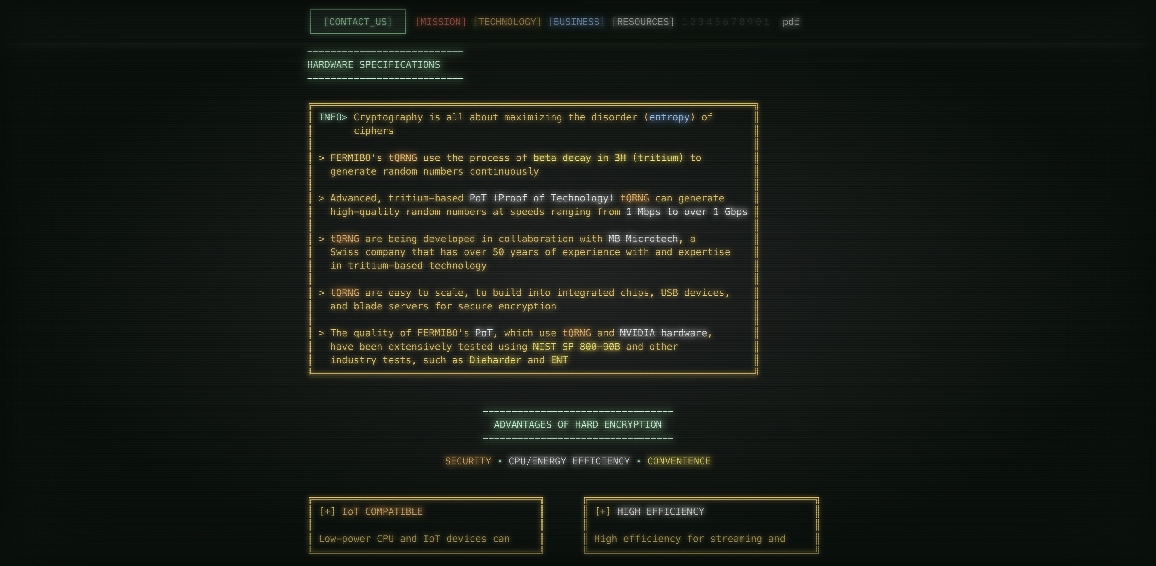 ║ ▓ FERMIBO's devices are based on tQRNG technology ║