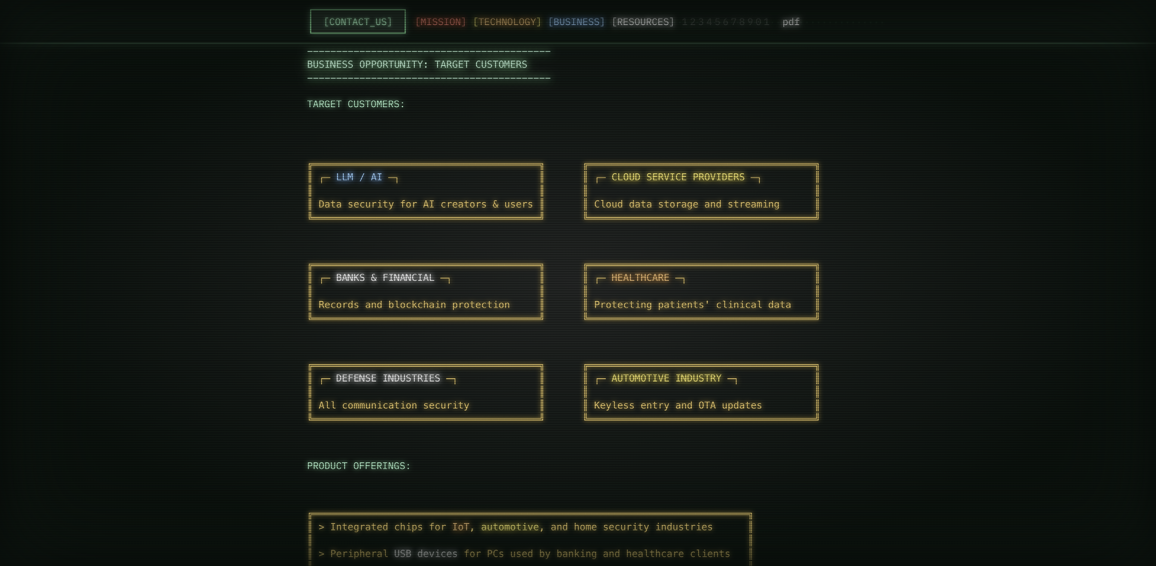 ║ OBJECTIVE> Develop and commercialize innovative and unbreakable ║